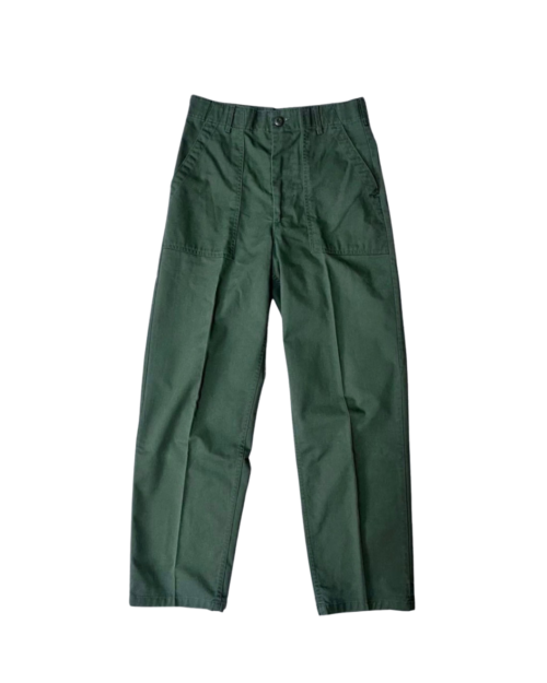 ベイカーパンツことOG-107ユーティリティパンツは、アメリカ軍のミリタリーウェアとして生まれた、シンプルでありながら高い機能性を誇るパンツです。その歴史的な背景と耐久性、そしてカジュアルなスタイルから、ファッションアイテムとしても広く人気を集めています。ここからは、ベイカーパンツの特徴とミリタリー由来の魅力を紹介します。
