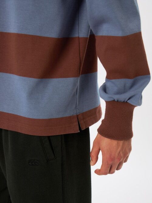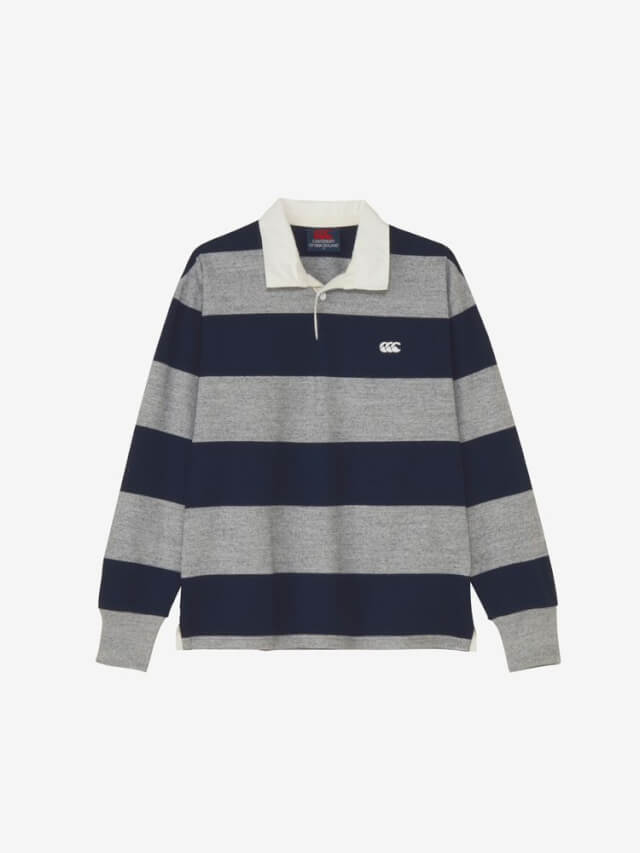 太幅4インチのボーダーは、まさにラガーシャツの象徴。クラシックな印象がありながら、どこか上品さも漂います。カンタベリーらしい落ち着いた配色で、フォレストグリーンやマルーン、ロイヤルブルーなどが人気。